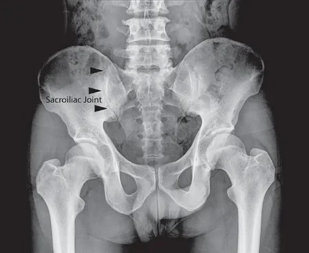 Here is an image of the SIJ using X-rays and demonstrates what it is we are looking at when assessing these joints through imaging: